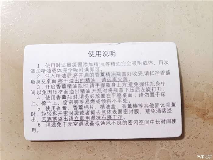 5、挥发效果:5分;冬季关闭车门半小时,驾驶位能够闻到清香。半闭车门一小时,后排座椅能够闻到清香味道,车内烟味不明显,夏天的挥发性能应该会更好;香味浓郁,清新自然,不刺鼻。
