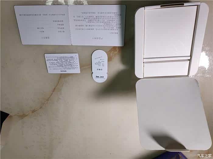 打开白色小盒子,里面有一层黑色的纸片盖片。接着是产品的说明书等物件。