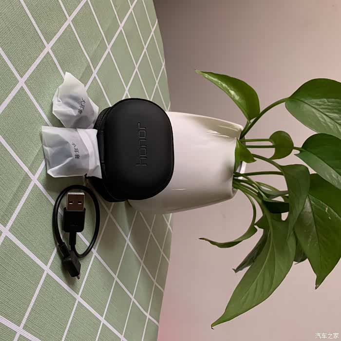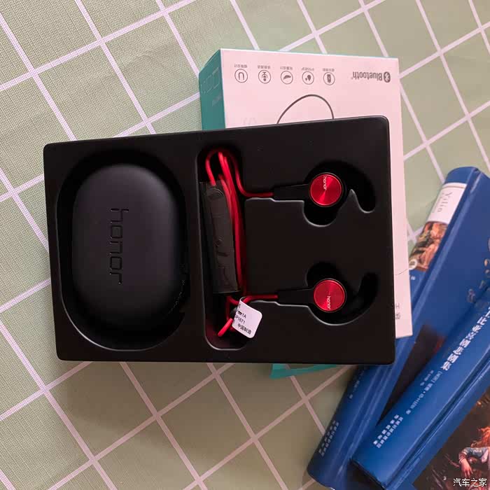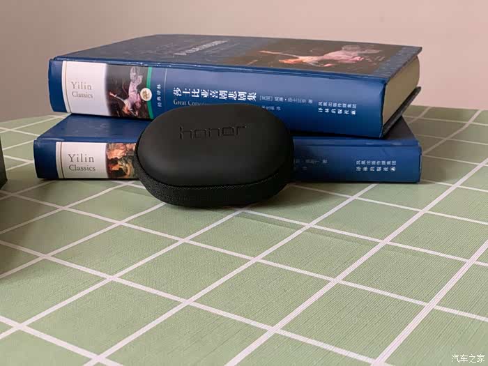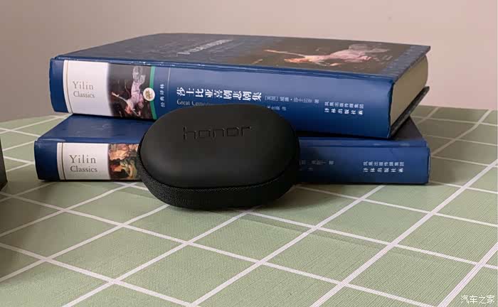 这款蓝牙耳机隶属于华为荣耀系列 右上角荣耀的LOGO彰显他的品质