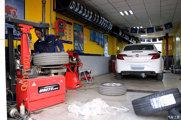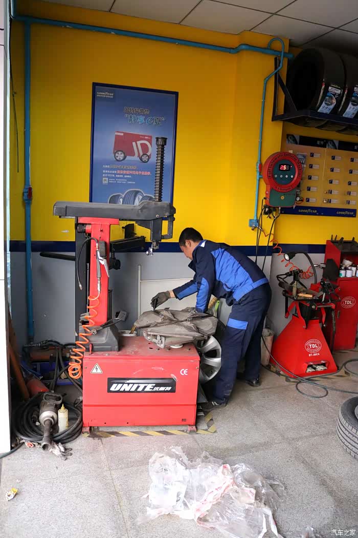 一大早就感到轮胎店,貌似我比约定时间早到了。