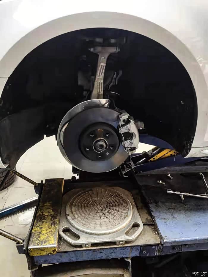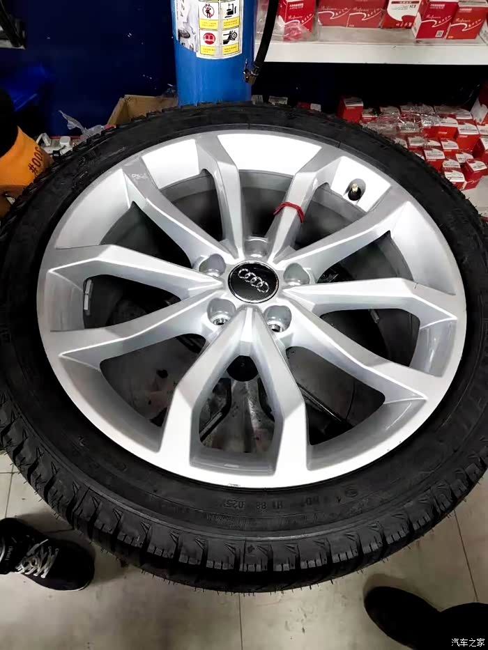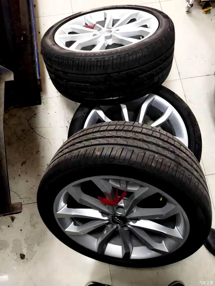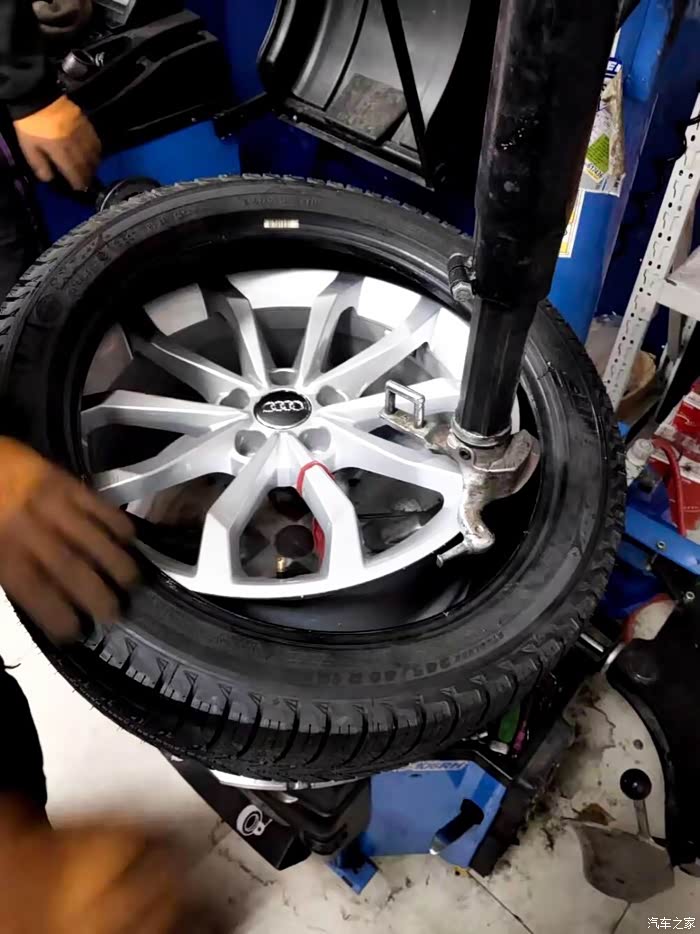 大家可以看到,新车轮毂上的红绳,哈哈。当然,换胎的每一步也是马虎不得的,换完之后一定要测好胎压,做好四轮定位。
