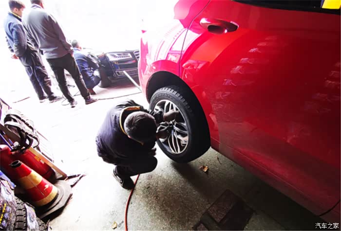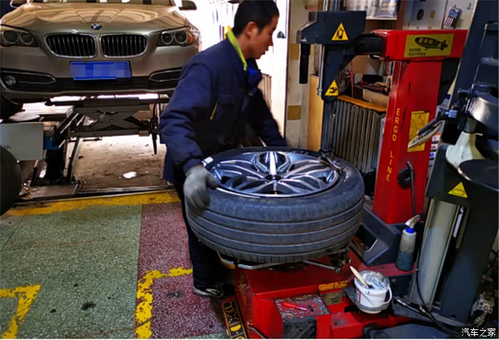 随后就是为我的车子安装新的轮胎了,速度同样是非常快的,这些都是做了很多年的老师傅了。