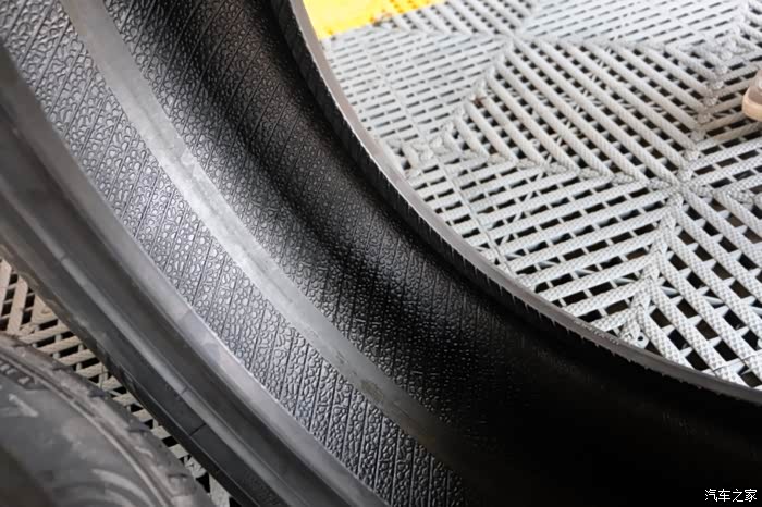 全车4条轮胎统一更换,便于今后全车轮胎的交差换位。新轮胎手感比一般轮胎略微柔软,摸起来也颇为细滑,而胎面的胶体弹性也不错。
