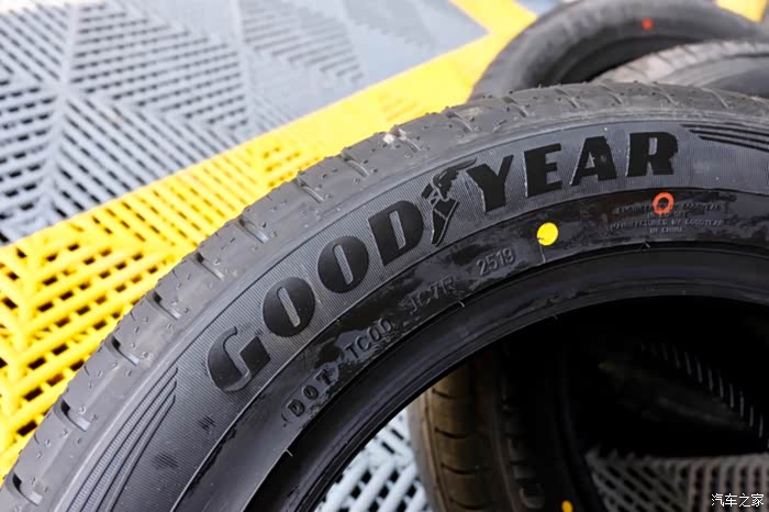固特异极品飞靴的标识很有辨识度。轮胎的肩部很圆滑,手感特别厚实。