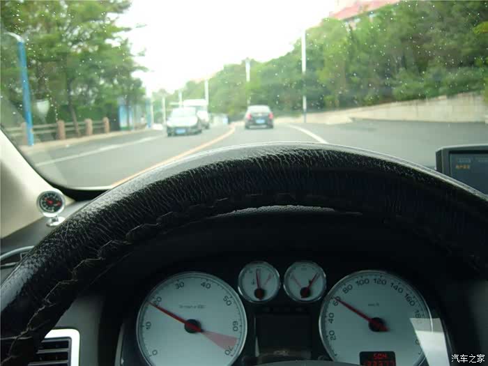当天阵雨天气,正好测试这款轮胎的各种性能。惊奇发现方向盘转向力度轻快一些。