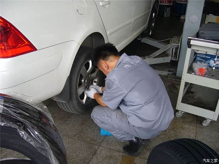 更换轮胎彻底完工,我去结账,狮子被移出工位,摆放到专用停车位上。