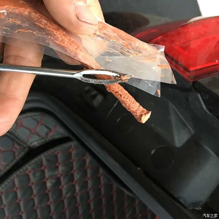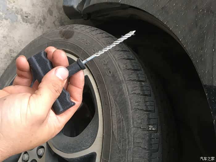 一直在漏气,用上改锥将洞口扩大点好补胎