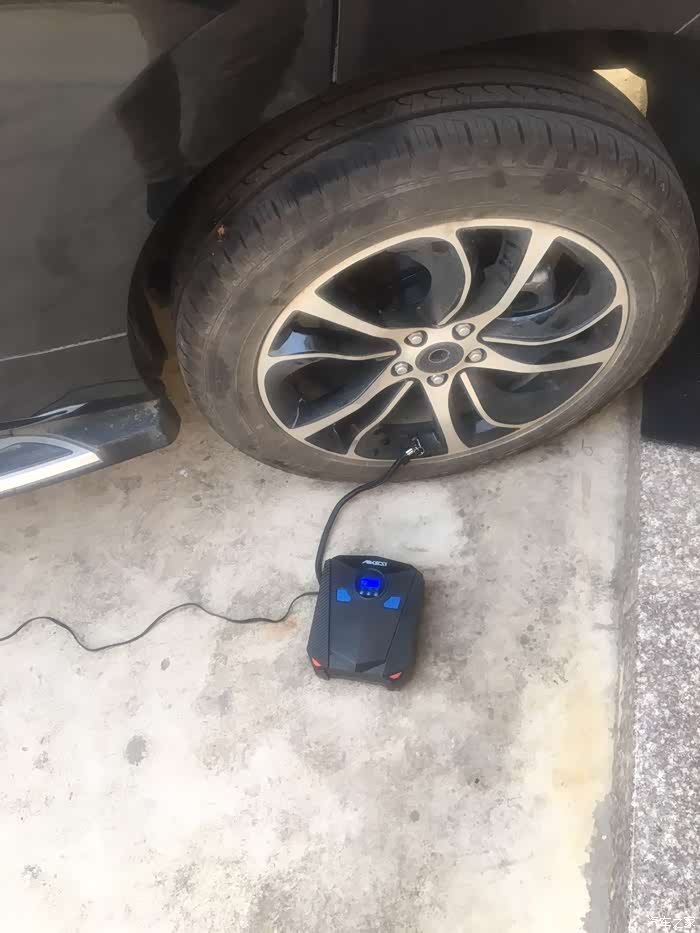 点烟器接头很方便,线很长,前后轮胎都能够到,不过打右侧就要换一边车门出去了