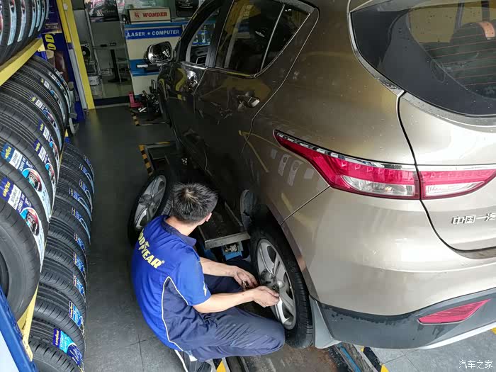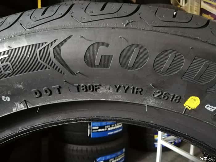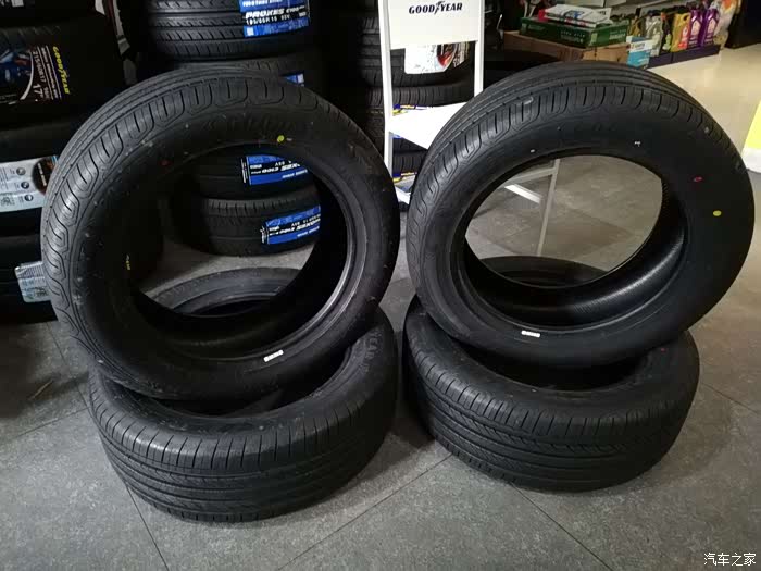 此次更换的四条全新固特异逸乘轮胎。