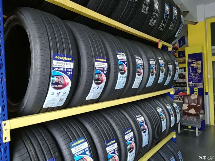 店铺里的架子上全是固特异—御乘轮胎。