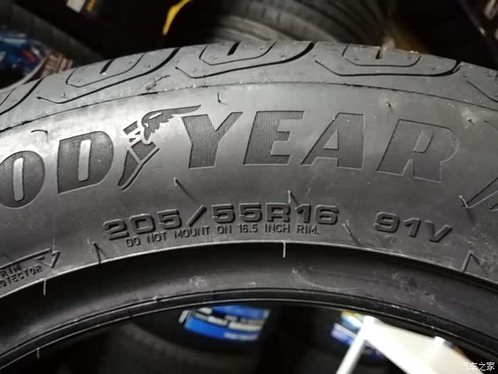 我原车的轮胎为205/60R16。扁平比从60变为55,也就是说换成固特异逸乘后,车辆底盘高度会降低1公分左右,较低的底盘对于行车安全也有很大提升。