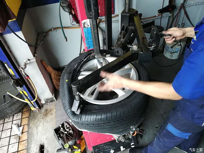 到店和老板确认好身份信息,师傅就开始拆轮胎了。