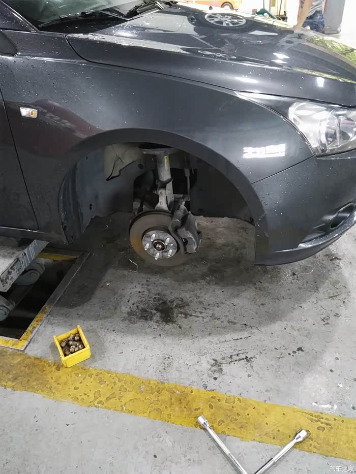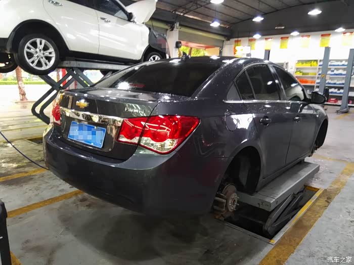 我是提前预约的安装时间,到了不用排队,直接停上工位。师傅态度比较好,服务也很专业,开始拆车轮。