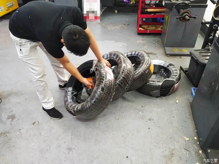验完货没问题,4个轮胎开拆准备安装。