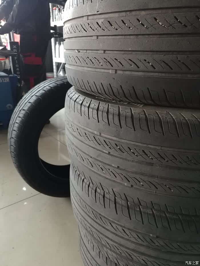 原厂佳通228已经跑了2年2个月,55000公里了,轮胎花纹已经磨损很多了,但还没到安全刻度一下,3万公里的时候前后轮对调过,所以现在后轮磨损呈现得严重一点,有一个轮胎补过3次了,四个轮胎侧面有些小的龟裂痕迹了,问过轮胎店的师傅,师傅说还可以跑1万公里,但是自己也感觉轮胎的抓地力差了很多了,湿地刹车性能也差了很多,马上2018了,考虑到过年用车安全,觉得换掉了。