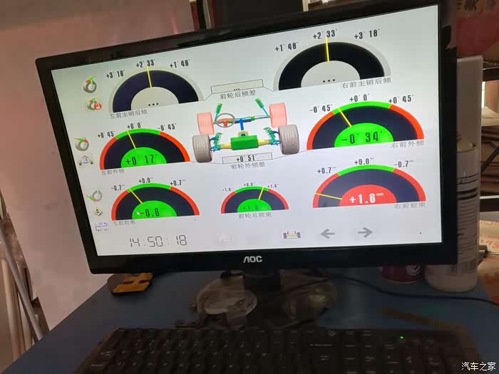 加了99元上了四轮定位,跑了这么久一直没做过,检测结果是有点跑偏