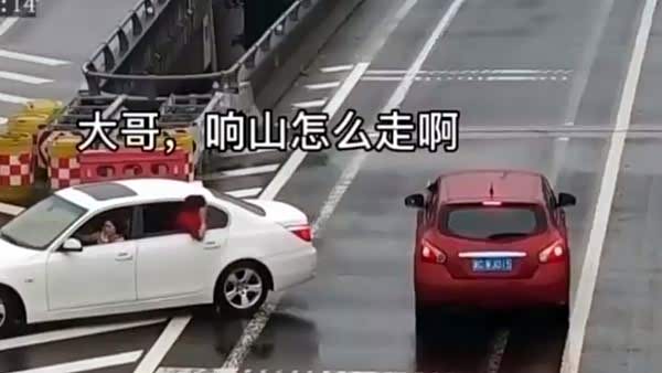 迷路了,怎么办?问个路呗!这应该是人在迷路后最简单也是最直接的想法。只是像这样在高速上逆行停车能问到路吗?令人没想到的是,一辆红色SUV经过岔道口时,面对宝马内两女子渴求的眼神与一句一个“大哥”的呼喊,这位司机恻隐之心大发,他真的把车停下来,然后给宝马车的女子指点迷津。