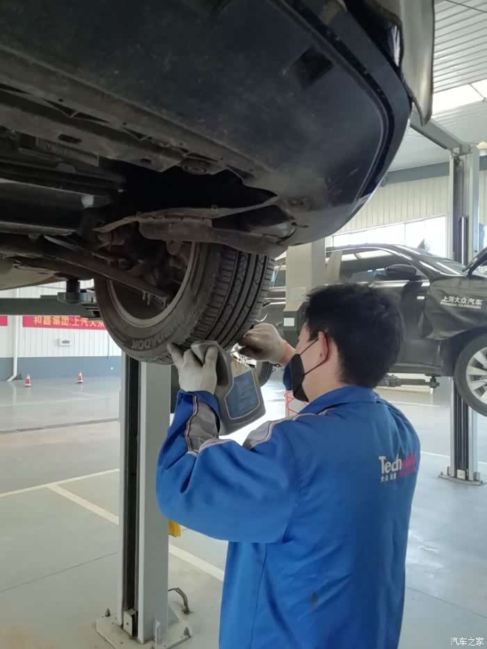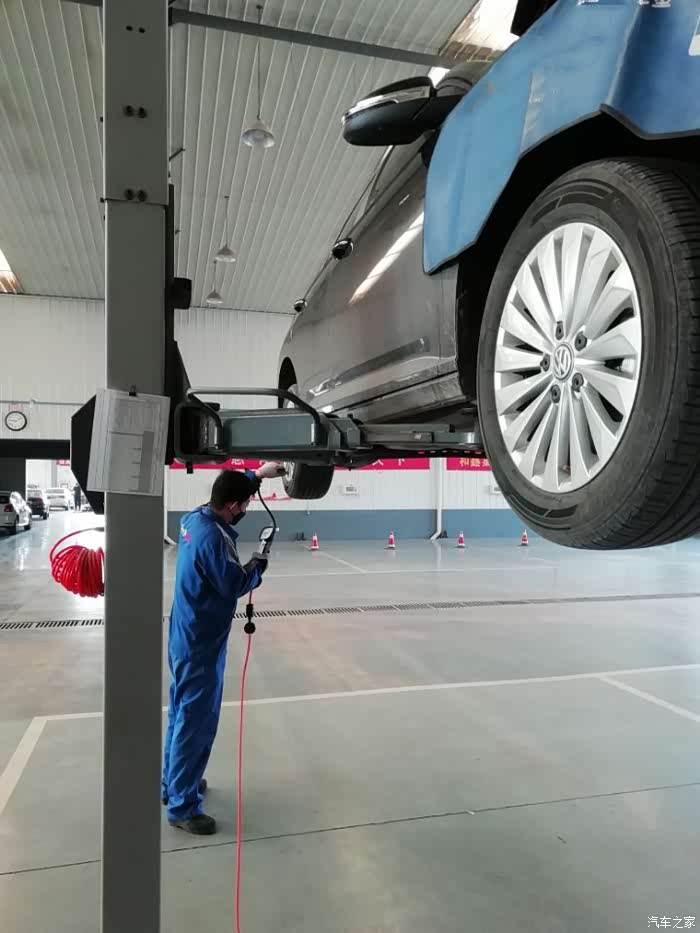 保养过程:车子开到工位后,师傅又叫了一个师傅先检查了车辆灯光。