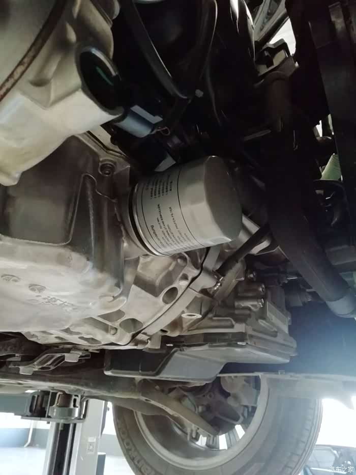 记得装上机油滤芯后,师傅还拿着手电筒查看滤芯和发动机间的缝隙,看来是观察是否安装到位吧。