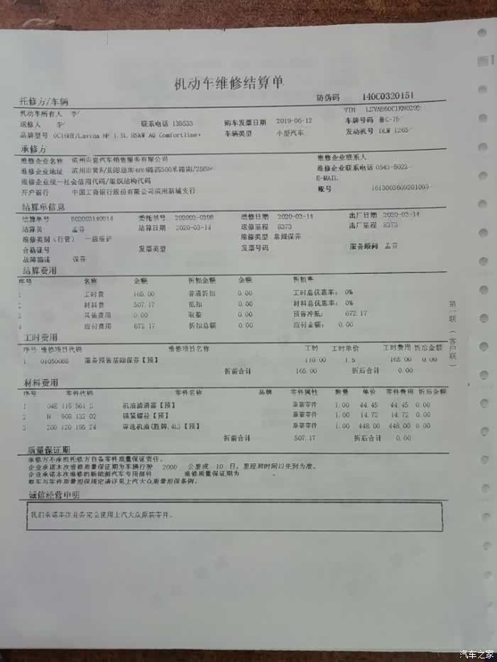 至此小朗第二次保养基本圆满完成,接下来最后一道手续,结算费用。