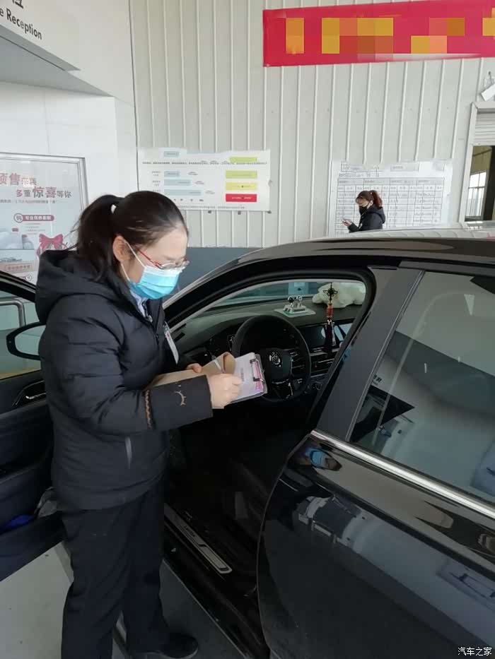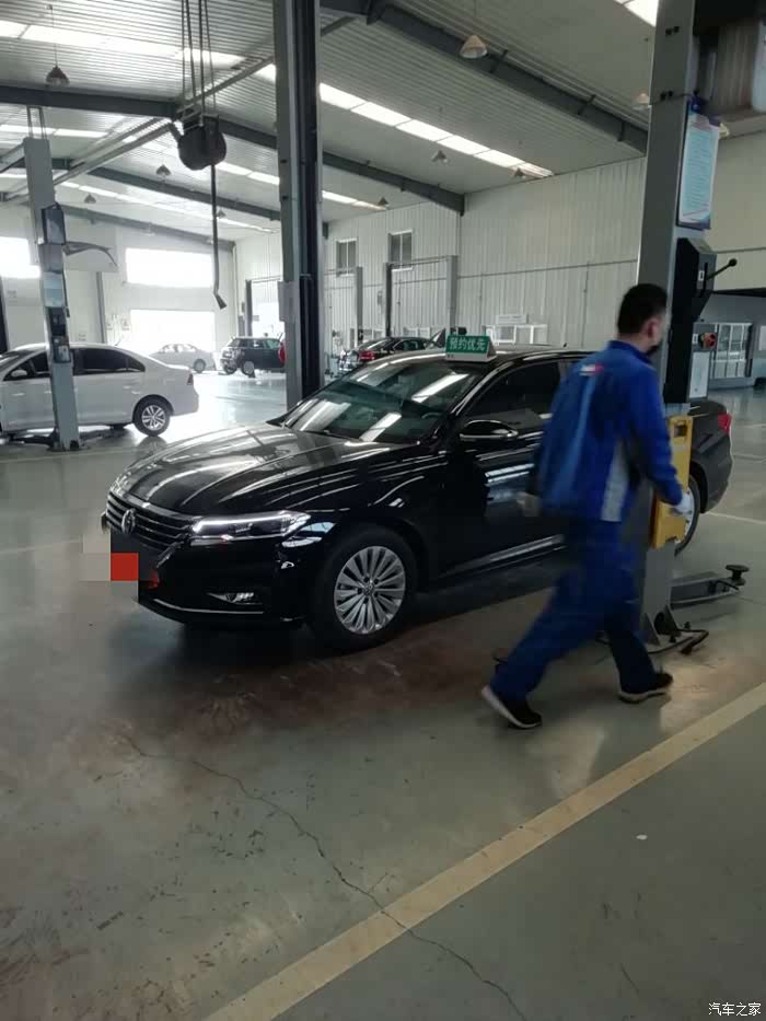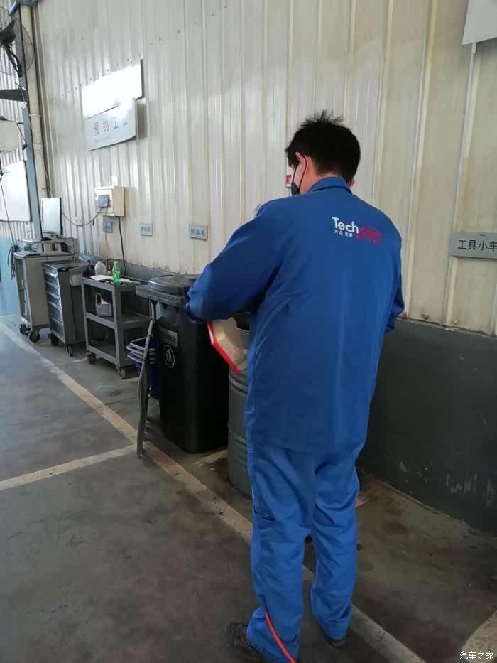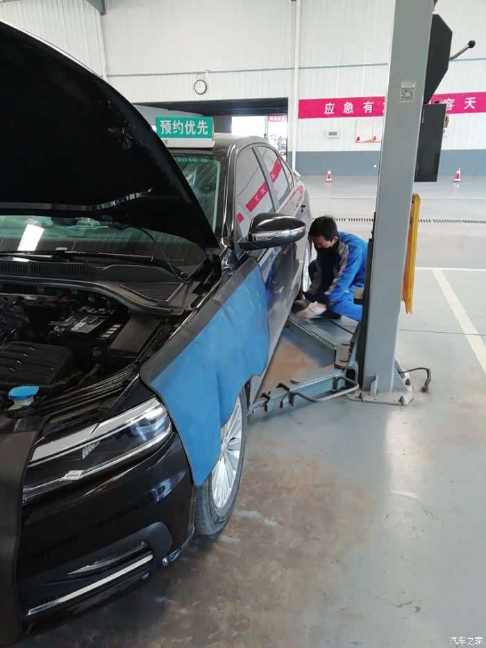 由于提前一天预约,加上到店时间比较早,车子开进预约工位后,保养顾问很快就出来登记、铺好防护膜和脚垫,师傅过来开车进入保养工位准备开工。