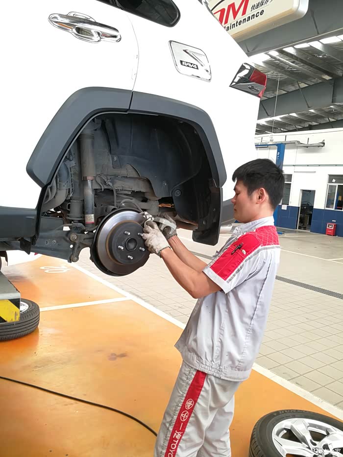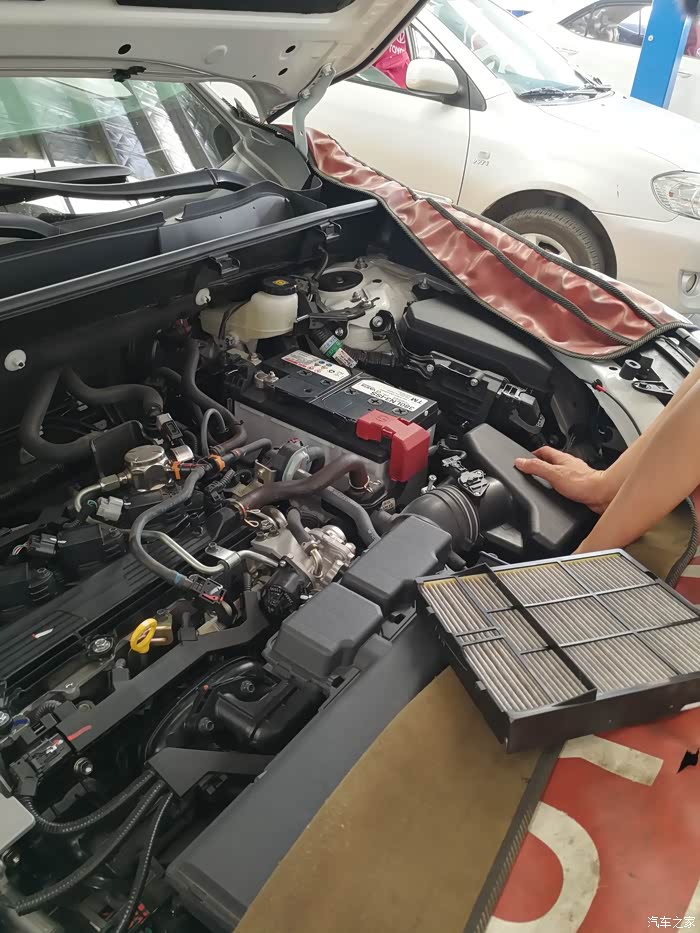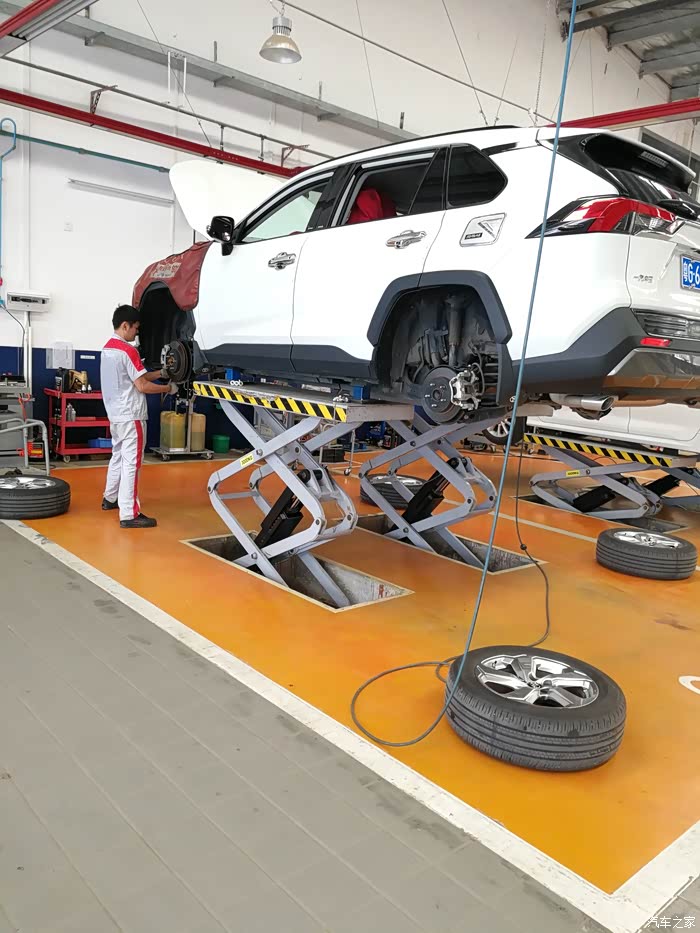 本人的20款RAV4荣放2.0L两驱风尚版,,到今天刚好半年。由于已经提前和正联售后维修部预约好,今天一大早便驱车直奔正联店,准备给爱车做二保。这次二保作业内容主要包括: 1.常规检查(三油、轮胎、胎压、刹车片、灯光、喇叭、底盘等等) 2.更换机油、机油滤清器(机油格) 3.清洁发动机的空气过滤器和空调过滤器 4.四个轮胎交叉位置