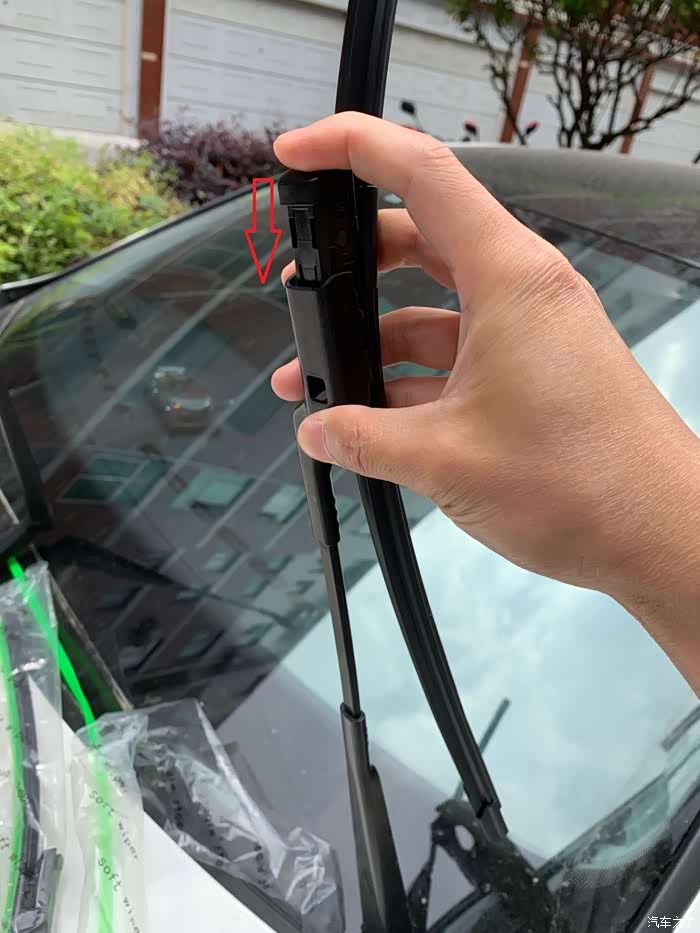 接下来就是安装新的雨刷器了,步骤和上面的相反,往下推,卡住就行了。