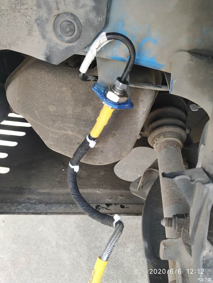自己动手换的,左边有变速箱壳体,钢喉比橡胶软管硬,所以按照原厂管路造型打死方向会碰里面,这种整理造型,最后就这鸟样,打死了不会碰,但是只有一公分不到间隙