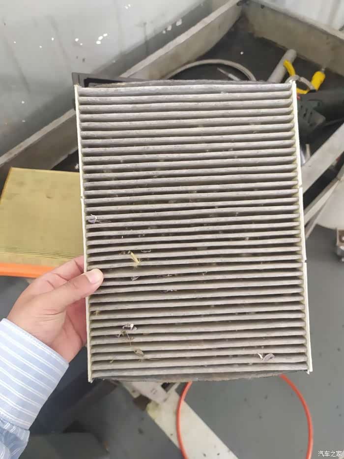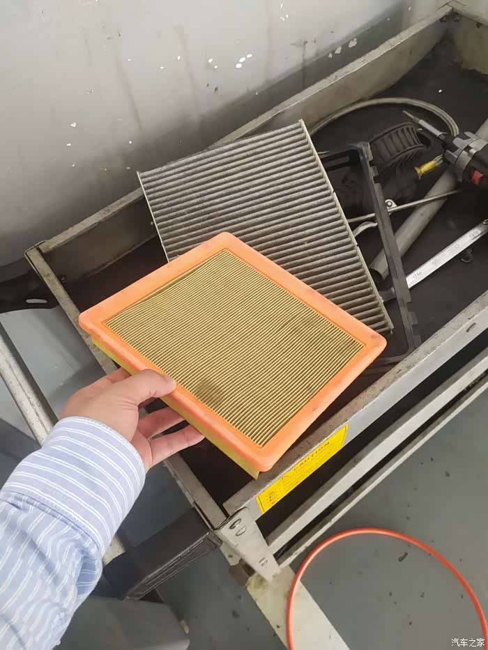 空气滤芯也很脏该换了。本来自己之前买了空调滤芯和空气滤芯,但是去的时候忘了带了,只能后边自己换了。