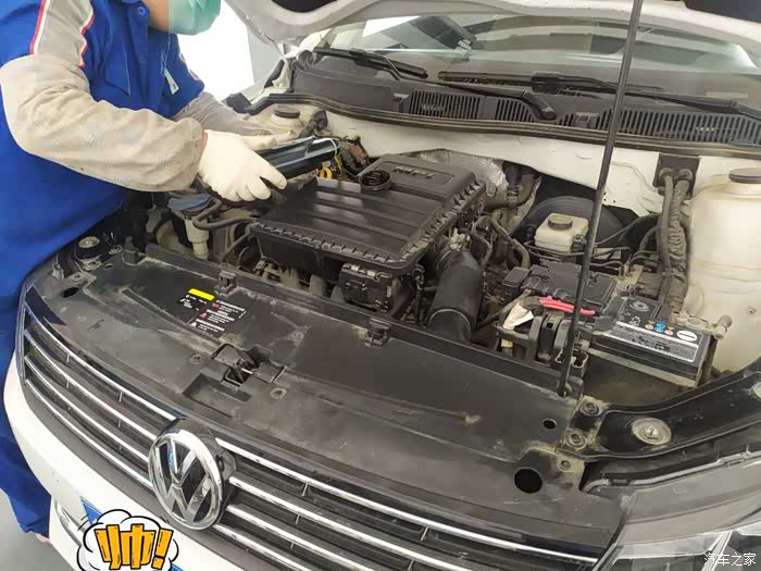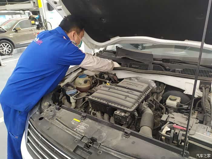 因为和店里很熟,再出来维修师傅已经把车开到工位,开始拆空调滤芯和空气滤芯了。