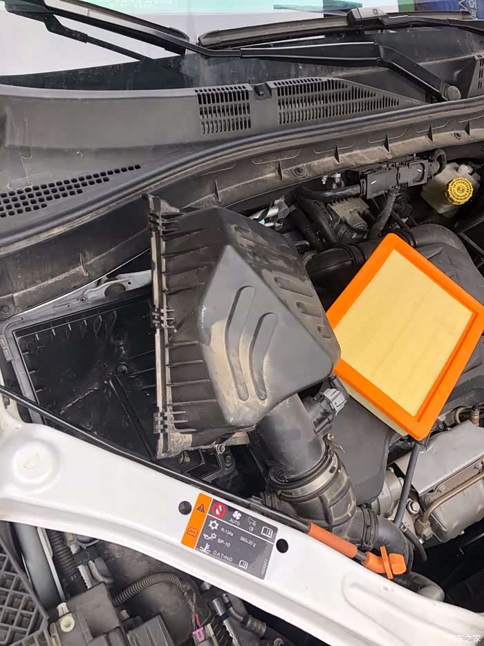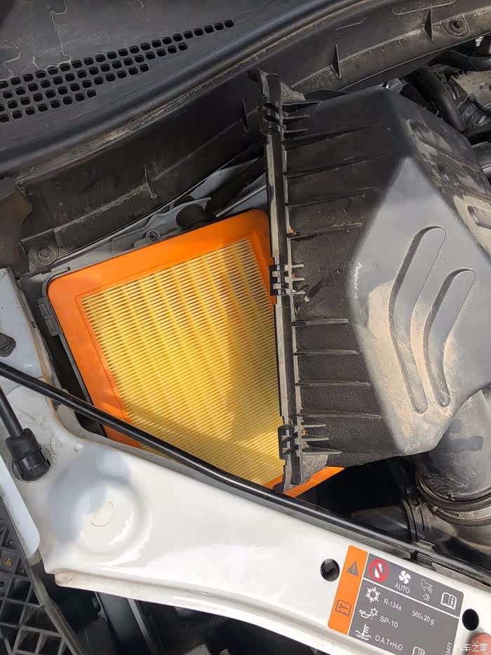 新的空滤安装上去了,外观尺寸是一样的,装上后把空滤外壳按原路装回螺丝拧上就安装完成了!