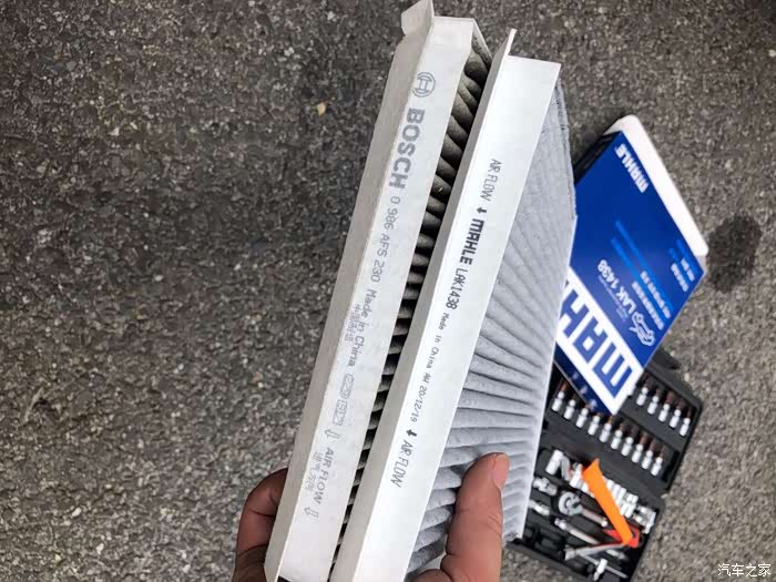 空调滤芯博世跟马勒尺寸差不多,各有千秋博世的活性炭过滤网薄一点,但是细节做工比马勒的好。滤芯的上面有标注箭号按箭号的方向安装,对准位置装上去就行。