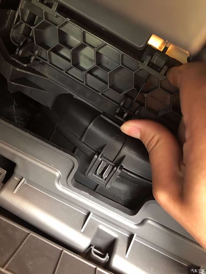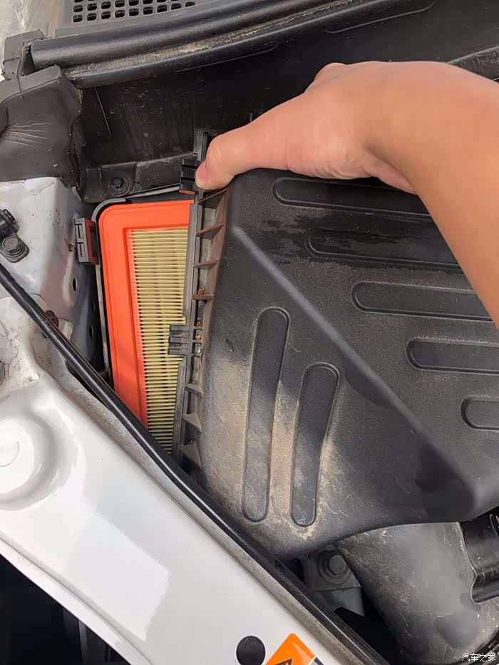 把空滤外壳打开到这个角度就可以把空滤取出来了。
