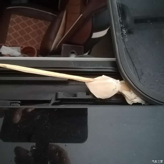 水?是的,反正要维护天窗,正好看看下水是否顺畅。准备了两瓶。打开天窗,就会看到滑轨侧车头方向的小孔,顺着小孔倒进水去就行了,这个很多网友都曾发布过图片,我就不拍照了;然后看下前轮后侧的地面上是否有水,看下正副驾驶脚垫是否有水。我是一个小孔倒了半瓶水,不要倒少了。