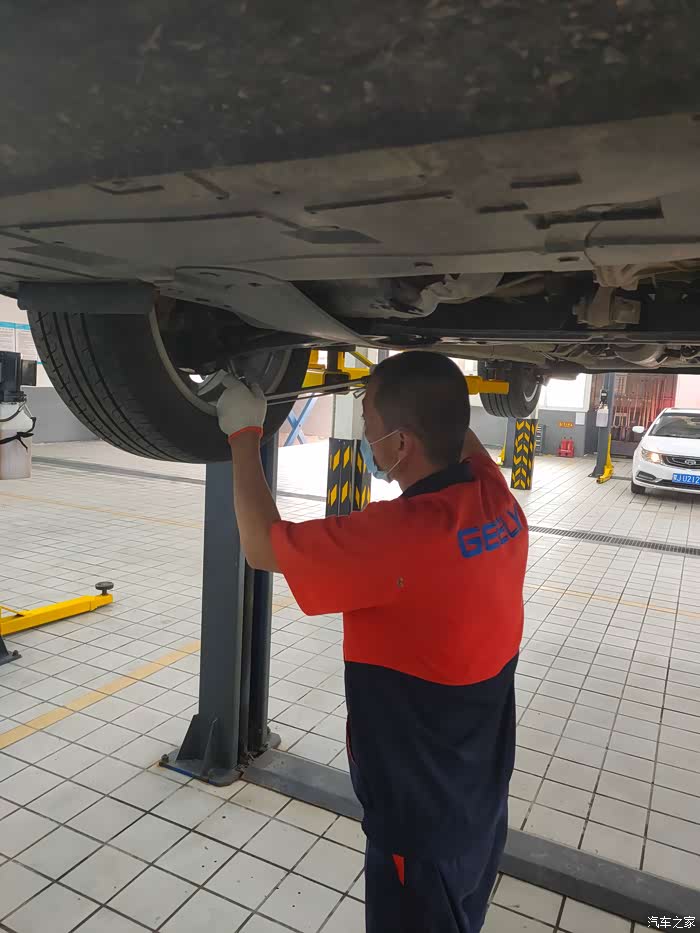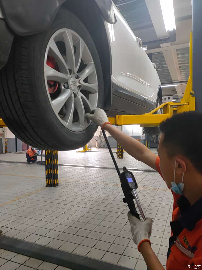 放机油的等待过程中,师傅在进行胎压监测