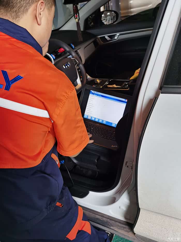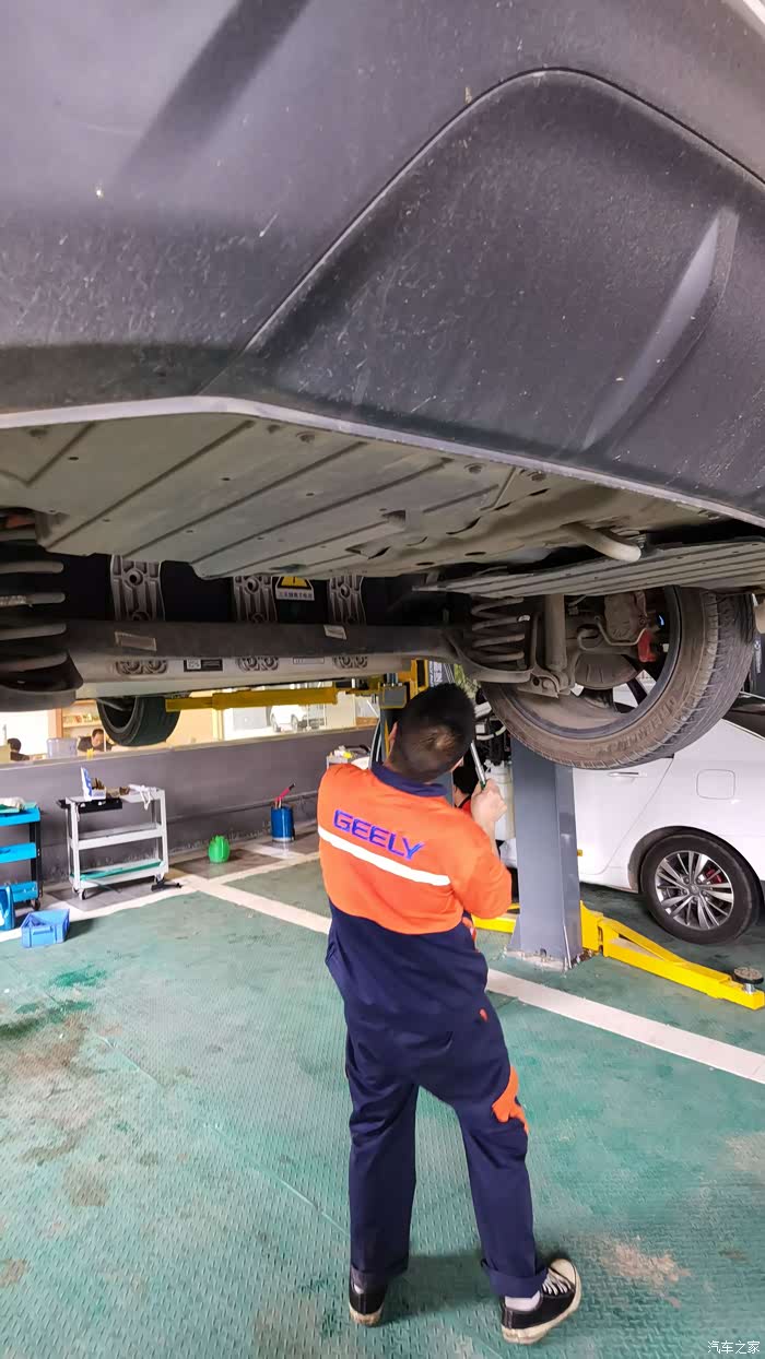 吉利售后师傅在紧螺丝。(看得我也想上去拧几下)