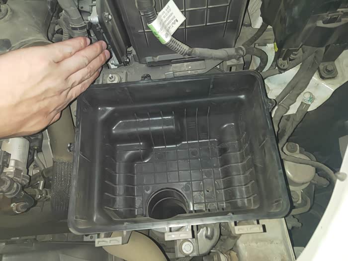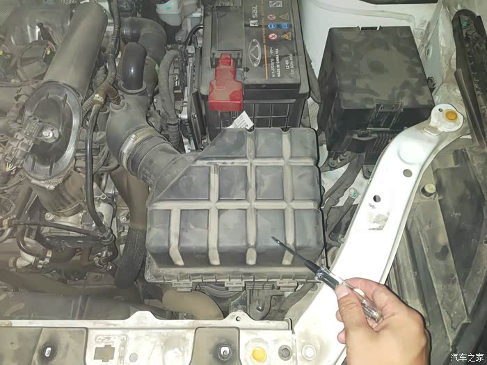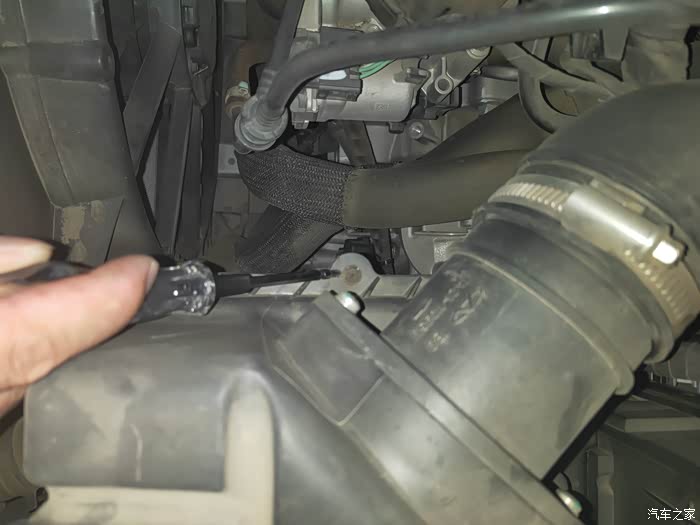 上方的5个螺丝拆除后,再往下就是空气滤芯盒子旁边有一个螺丝。