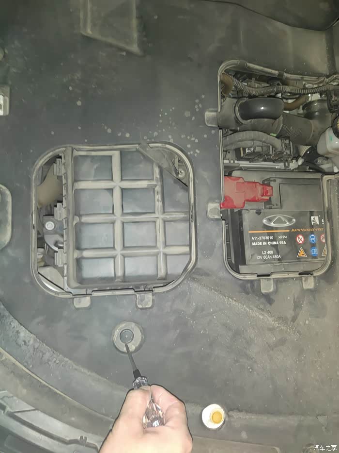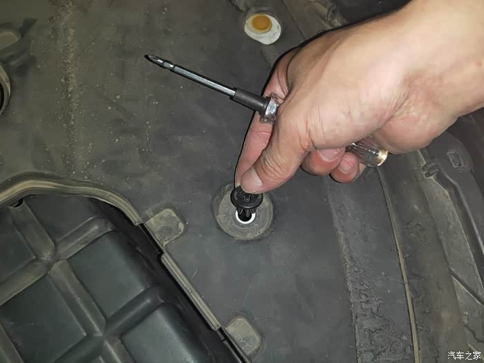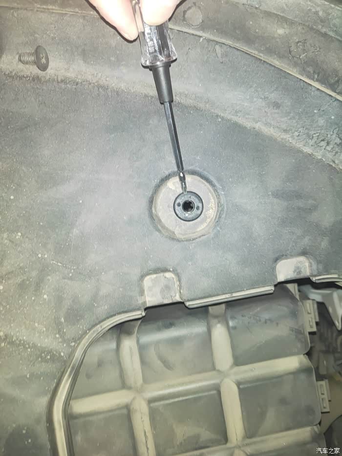 因为是在地下车库更换的,光线不是很好,所以我就多放几个图片来体现一下发动机护板的固定螺丝都在哪些位置。