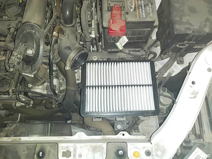 电瓶,空气滤芯,发动机舱上都还有一个小护板,这次也都去除了擦拭一下。
