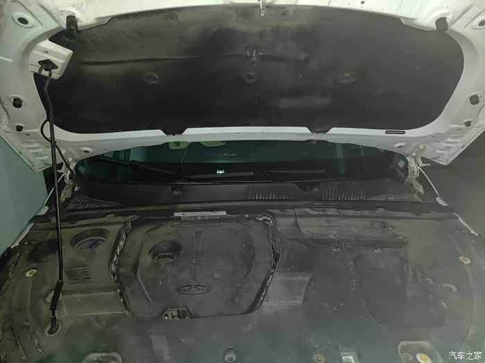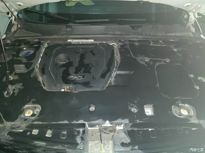 把所有的小护板都去除掉,整个发动机舱就呈现在眼前了。发现有油渍,问了4S 店说应该是上次保养加机油撒到外面师傅没有擦干净,时间长聚灰了,后面再去了好好再用清洁剂清洗一下。