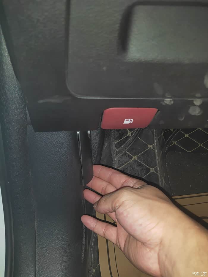 写的详细一些吧,首先先打开发动机舱,这个油箱旁边的把手向座椅一侧掰动即可。