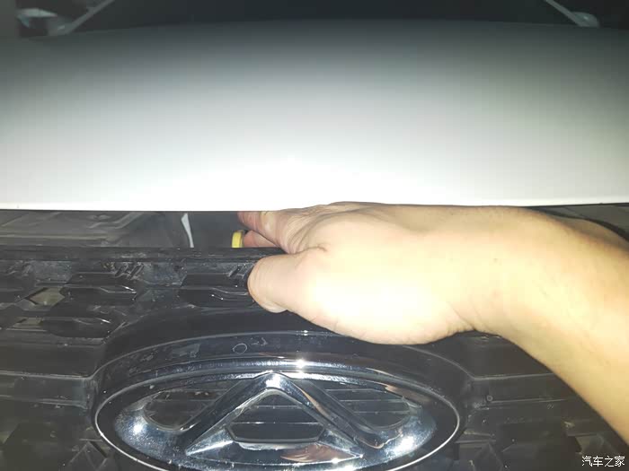 然后在向副驾驶一侧拨动黄色拉环即可抬起引擎盖。