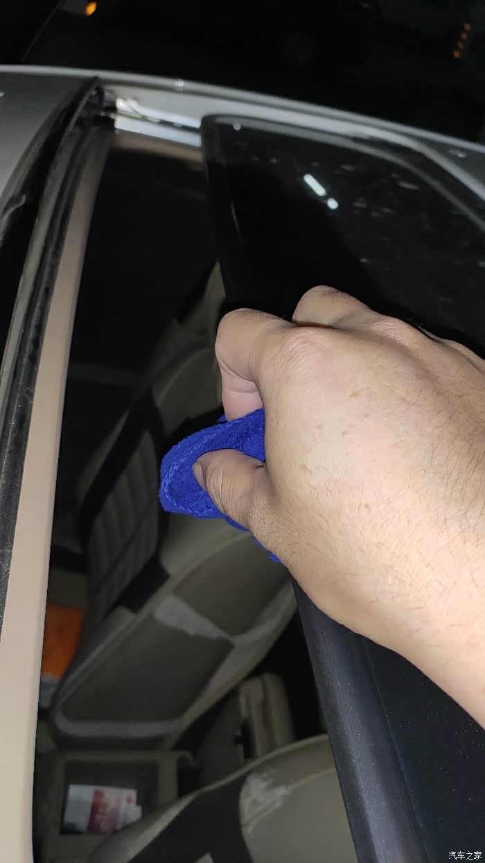 先用毛巾对门边、天窗、后备箱和发动机舱的密封防水胶条进行擦拭