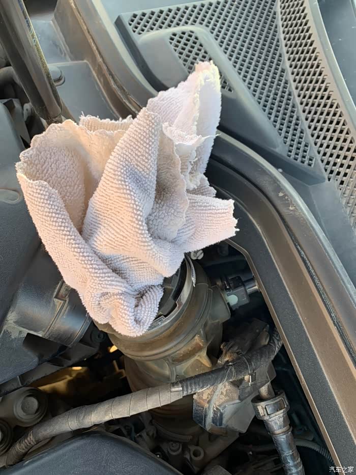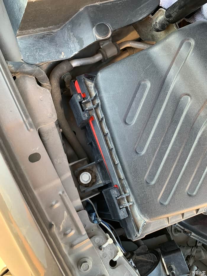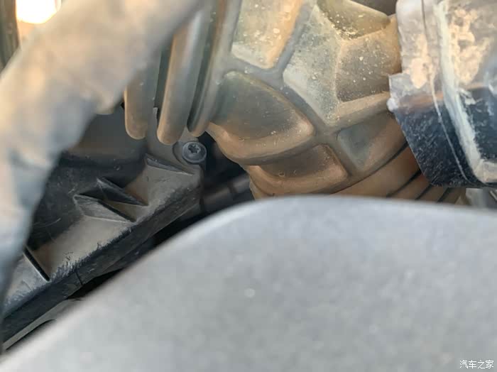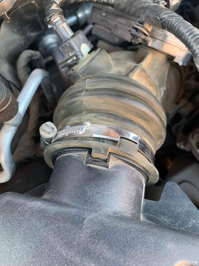 最后装回进气软管,注意软管和空滤盒有卡槽,要对准,卡鼓也有,原位置装好。