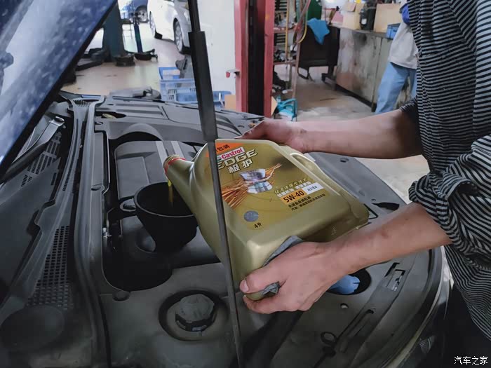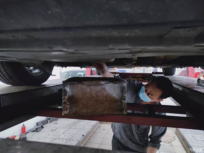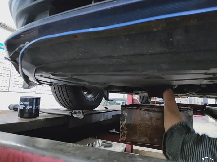 这次保养并不是去4s店,而是买车险保险公司送的,所以工具看起来比较简陋。但这些都并没有什么关系,只要机油好就可以了。