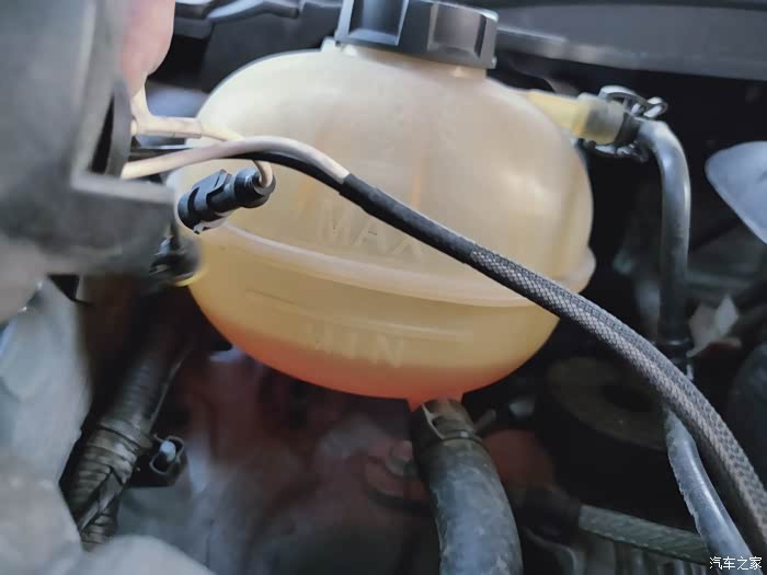 最后冷冻液已经低于最低标准线了,我自己在网上买了一瓶吉利专用冷冻液回来还没到货。到货自己倒进去就可以了,不要超过最高标准线就行。