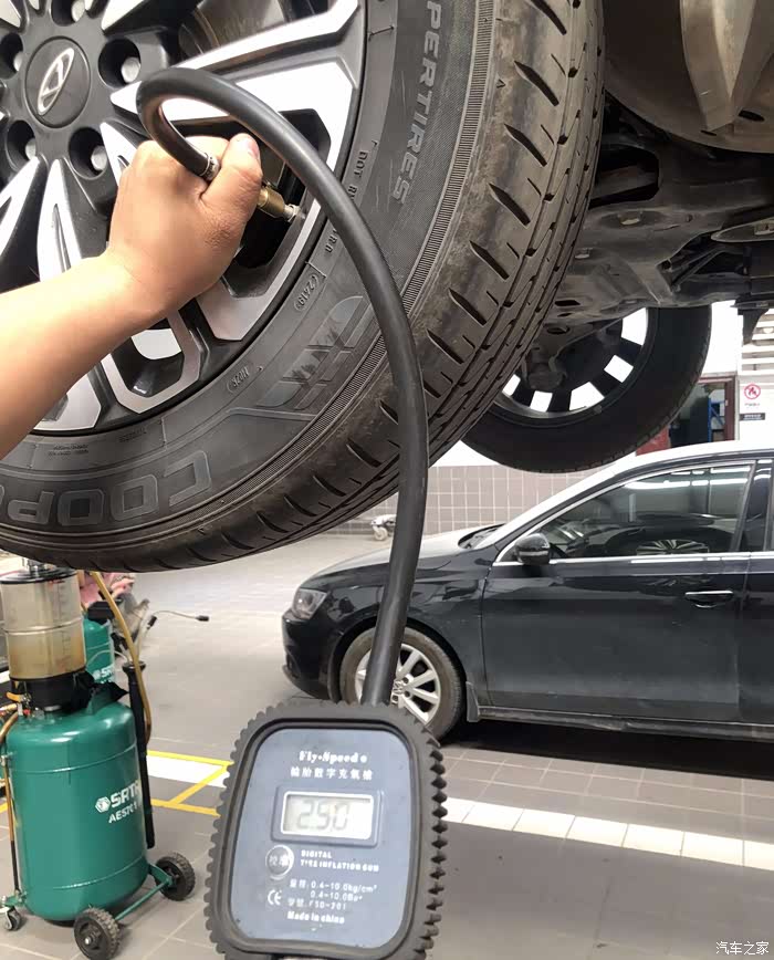 气压稍微添加一点,仪表显示胎压2.3了,感觉不够,还是要求加到2.5来,这样高速跑会更省油一些