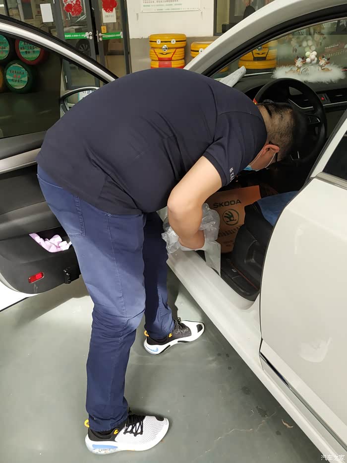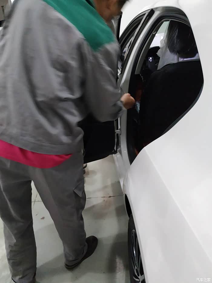 服务顾问在给铺脚垫,座椅💺套,每个4S 店都是这样滴!给人感觉还是很专业滴
