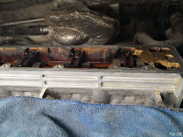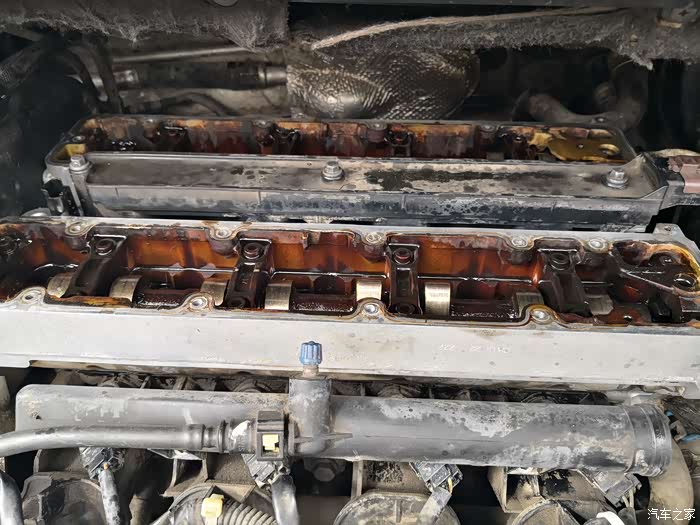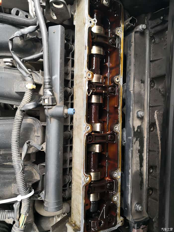 高压线圈在两只气门室盖的中间。图中左边是最内的气门室盖,渗油严重。