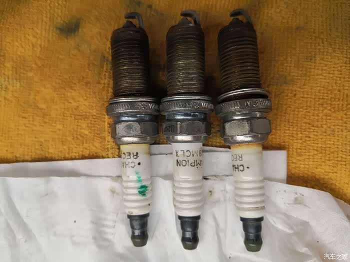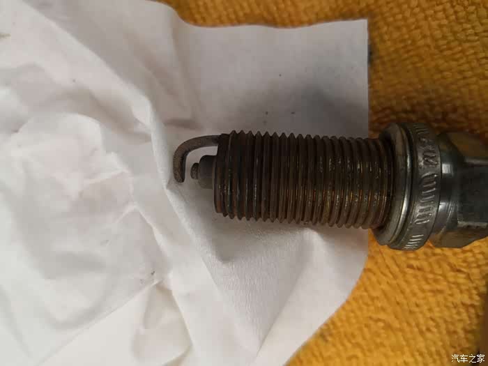 原火花塞间隙已经大于1.0mm了,师傅用塞尺调整了火花塞的间隙到0.9mm 。火花塞是冠军的REC9MCLX,原车参数热值为9,间隙为0.7--0.9mm 。